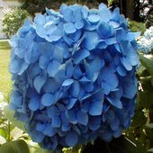 Ορτανσία μπλέ: Πολυετής ανθοφόρος θάμνος με μαλακά ανοιχτά πράσινα φύλλα και πολύ πλούσια ανθοφορία. Επιβιώνει σε σημεία με έμμεσο φωτισμό και πολύ υγρασία σε καθημερινή βάση. Κάθε έλλειψη νερού αποτυπώνεται με αποκαλυπτικό τρόπο πάνω στο φυτό. Επιβάλλεται να κλαδεύεται κάθε Άνοιξη και Φθινόπωρο αλλά και να λιπαίνεται σε τακτά διαστήματα.