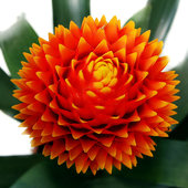 Γκουσμάνια κονιφέρα: Πολυετές ανθοφόρο τροπικό φυτό με πλούσιο άνθος σε κόκκινο και κίτρινο χρώμα με πολύ ιδιαίτερο σχήμα μερικώς οβάλ. Μεγάλης αντοχής και διάρκειας σε δύσκολες και αντίξοες συνθήκες Χρειάζεται πότισμα τουλάχιστον μια φορά την εβδομάδα και τακτική μηνιαία λίπανση.