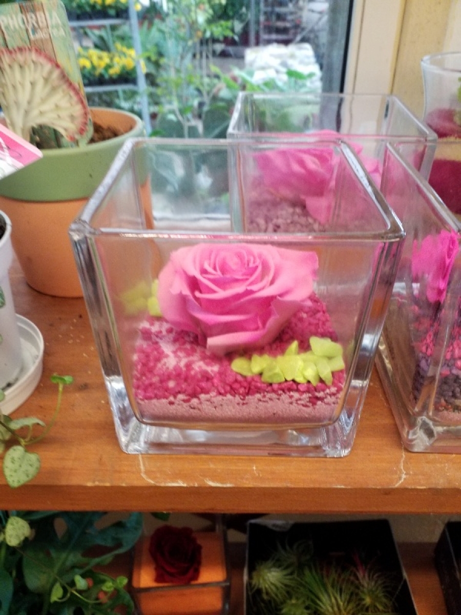 Forever rose σε γυάλινο βαζάκι με διακοσμητικές πέτρες Forever rose σε γυάλινο βαζάκι με διακοσμητικές πέτρες