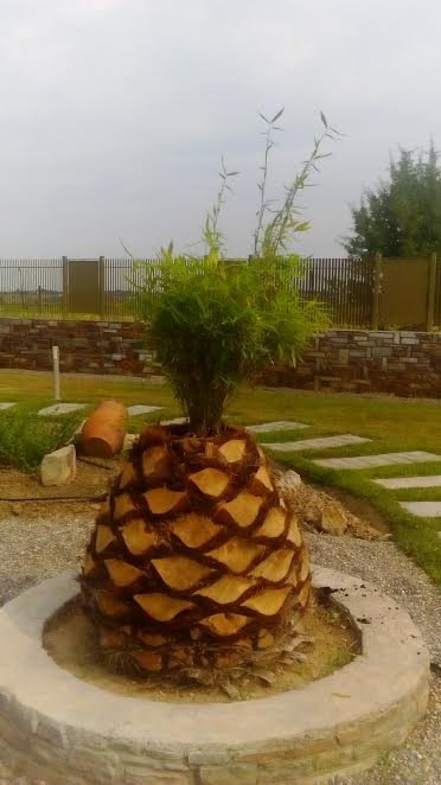 Το 2017 είναι η χειρότερη χρονιά στην ιστορία των φοινικοειδών για την πατρίδα μας, τόσο από την πλευρά της αρρώστιας εξαιτίας του γνωστού πλέον σκαθαριού που προσβάλλει το κεντρικό ριζικό σύστημα και οδηγεί με μαθηματική ακρίβεια στον μαρασμό του φυτού, όσο και από την πλευρά του απόλυτου παγετού που με την μακρά διάρκεια του κατέστρεψε φυτά πολλών ετών ογκώδη, πανέμορφα και πανάκριβα. Και στις δύο περιπτώσεις η πρώτη λύση είναι η αντικατάσταση του φοίνικα με κάποιον καινούργιο, διαδικασία δαπανηρή, πολύ κοπιαστική αλλά και χρονοβόρα, καθώς προυποθέτει την κοπή του προυγούμενου με ειδικά εργαλεία και την τοποθέτηση του νέου με γερανό και εξειδικευμένα μηχανήματα λόγω βάρους και μεγάλου όγκου. Όλα αυτά οριοθετούν έναν κύκλο εργασιών μακρύ και επιπονο που απαιτεί πολλά χρήματα, κόπο και ειδικευμένες γνώσεις σε όλα τα επιπεδα. Για αυτόν τον λόγο τα Φυτώρια Κέντια σε συνεργασία με τους έμπειρους εξωτερικούς συνεργάτες τους προτείνουν μια πιο εύκολη και πρωτοποριακή λύση, αρκετά πιο εφικτή και οικονομικότερη. Ο φοίνικας όταν νεκρώνει, ξεραίνονται όλα τα φύλλα του στην κορυφή και το φυτό αδυνατεί να αναπτύξει νέο φύλλωμα με αποτέλεσμα ο κορμός του εσωτερικά να χάνει όλη την ελαστικότητα και την ευκαμψία του. Ωστόσο παρόλη την ολοκληρωτική του καταστροφή, εξωτερικά το φυτό παραμένει αισθητικά άθικτο και απόλυτα σώο και συμπαγές, καθώς η καρύδα των φοινικοειδών σπάνια σαπίζει. Αυτή η μικρή λεπτομέρεια είναι και το βασικό λιθαράκι στην σκέψη αναδιαμόρφωσης του φυτού με τεχνητό τρόπο εύκολα και γρήγορα χωρίς ξηλώματα και ταλαπωρία. Το πρωτο βήμα στην διαδικασία είναι η κοπή οριζοντίως στην κορυφή της καρύδας στη βάση των φύλλων ενός ικανού τμήματος με σκοπό να δημιουργηθεί μια όσο το δυνατόν λεία και οριζόντια επιφάνεια που θα αποτελέσει και το πρώτο βήμα των εργασιών. Στη συνέχεια με ηλεκτρικό πριόνι αφαιρείται σταδιακά όλο το εσωτερικό κομμάτι με την βοήθεια κάθετων τομών σε όλη την εσωτερική επιφάνεια και σε πολύ κοντινή απόσταση απο την εξωτερική πλευρά δημιουργώντας έναν δακτυλιο πάχους τουλάχιστον 10 εκατοστών που θα λεοτουργήσει μελλοντικά και σαν μονωτικό υλικό. προφυλάσσοντας κάθε εσωτερικό τμήμα από αντίξοες εξωτερικές συνθήκες. Το βάθος των τομών δεν είναι απαραίτητο να ξεπερνά τα 60-70 εκατοστά, ούτως ώστε οποιαδήποτε άλλη διαδικασία επεξεργασίας του εσωτερικού να πραγματοποιείται εύκολα και γρήγορα. Το επόμενο βήμα είναι η μόνωση του ολόκληρου του φοίνικα μέσα έξω με βερνίκι ή καποιο άλλο διαφανές υλικό παχύρευστο που δεν θα επιτρέπει την υγρασία ή τους μικροοργανισμούς να εισχωρούν και να προκαλλούν κάποια ζημιά. Σε περίπτωση που χρειαστεί μπορεί να περαστεί και δεύτερη και τρίτη φορά το στρώμα της μόνωσης προκειμένου να θωρακιστεί απόλυτα κάθε σημείο των επιφανειών. Τέλος στην βάση της καρύδας απαραίτητη κρίνεται και μια επιπλέον στερέωση με μπετόν ή κάποιο άλλο υλικό ώστε να διασφαλιστεί η σταθερότητα της σε περίπτωση ισχυρού ανέμου ή απότομης και ξαφνικής νεροποντής. Με τον τρόπο αυτόν έχει δημιουργηθεί μια απόλυτα στεγανή και ταυτόχρονα όμορφη θήκη που αισθητικά διατηρεί τα τροπικά χαρακτηριστικά του φοίνικα, εσωτερικά όμως λειτουργεί σαν μια κανονική γλάστρα με μοναδικό της μειονέκτημα το γεγονός οτι δεν μετακινείται και οτι δεν έχει σύστημα αποστράγγισης. Συνήθως σε αυτήν την περιπτωση τοποθετούντα