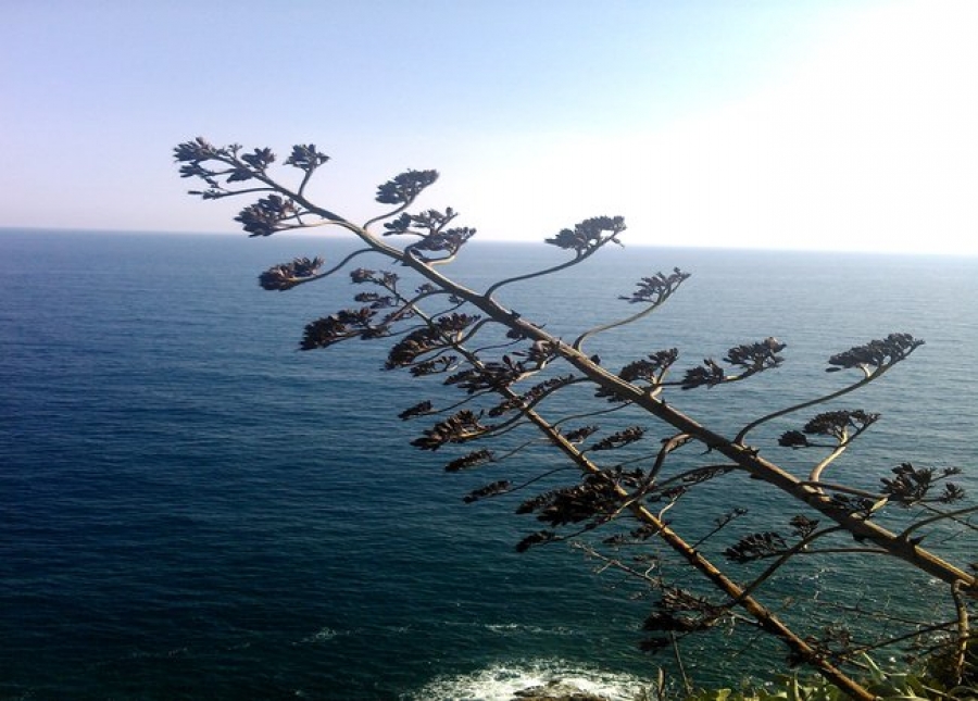 Το άνθος της αγάυης με φόντο τα νησιά Το άνθος της αγάυης με φόντο τα νησιά